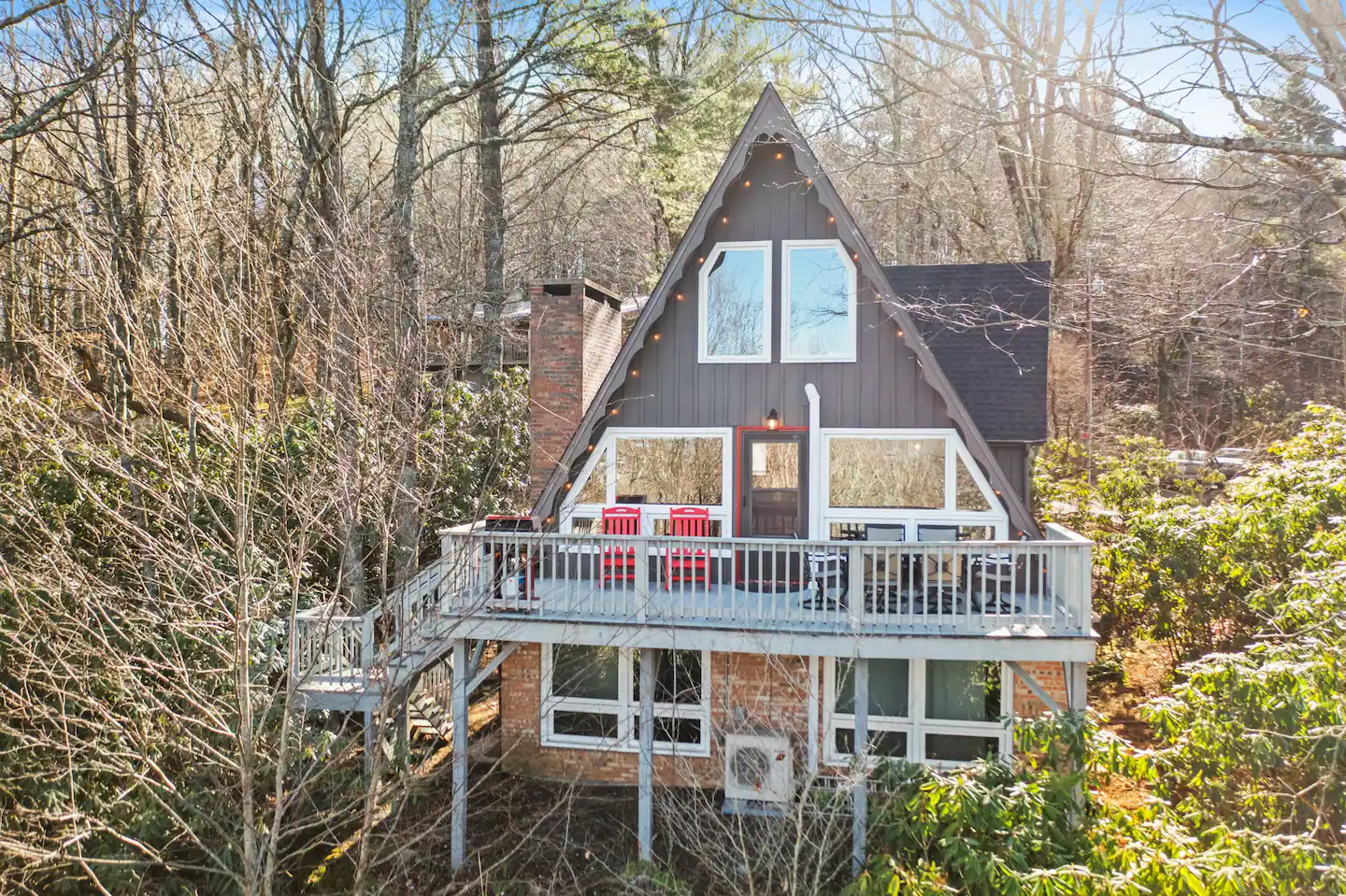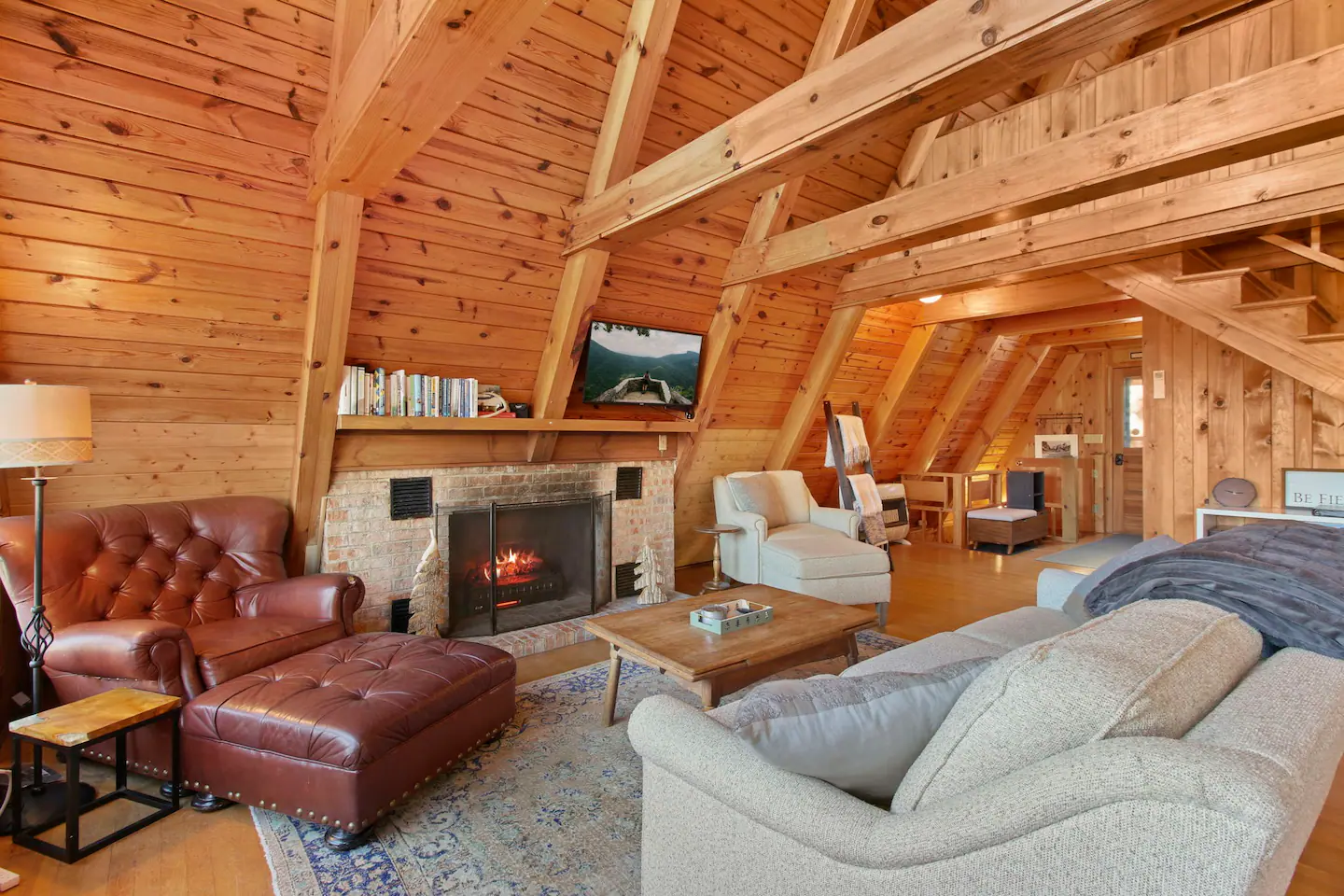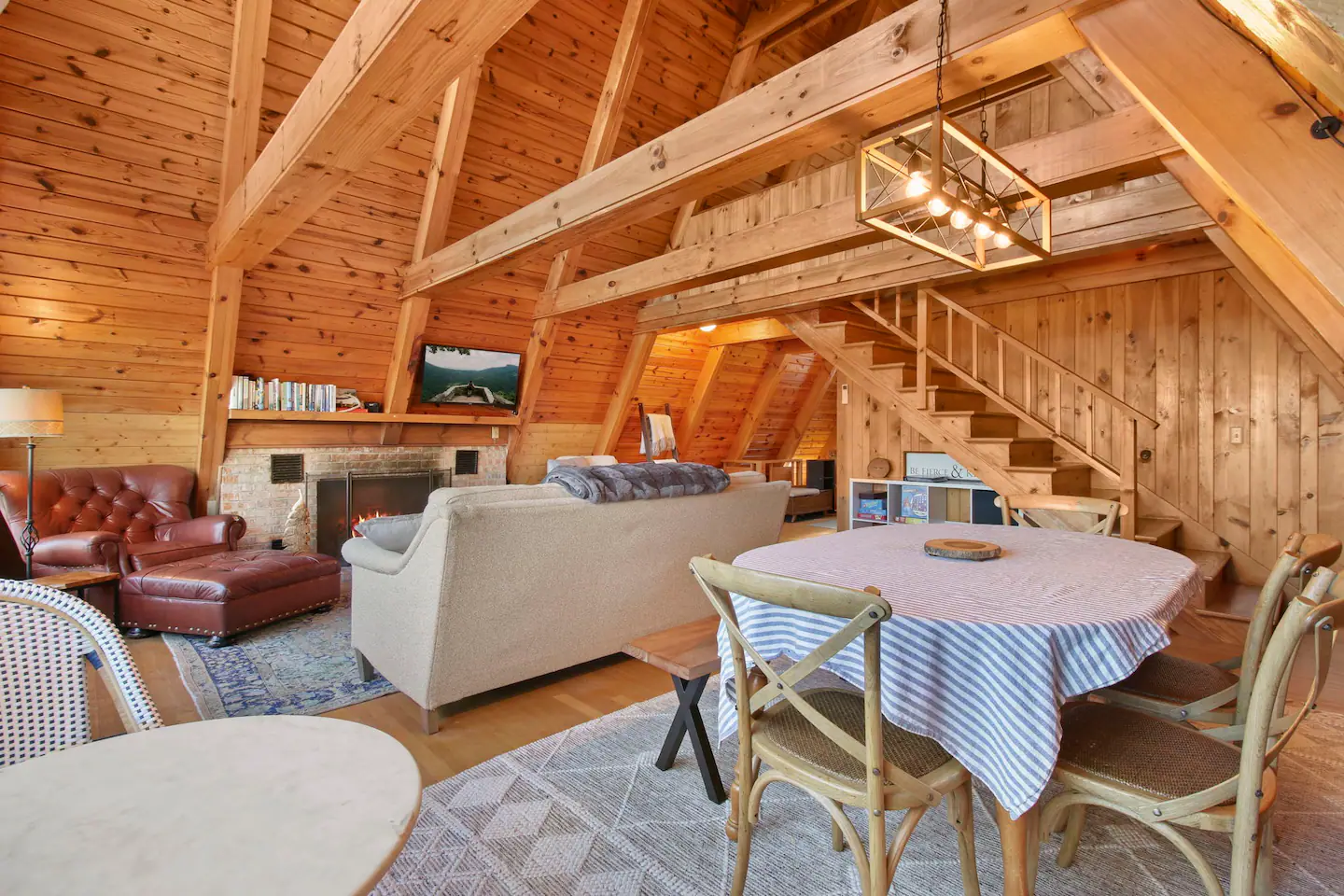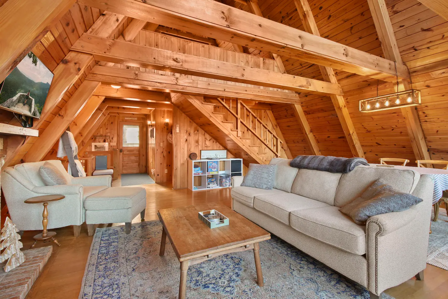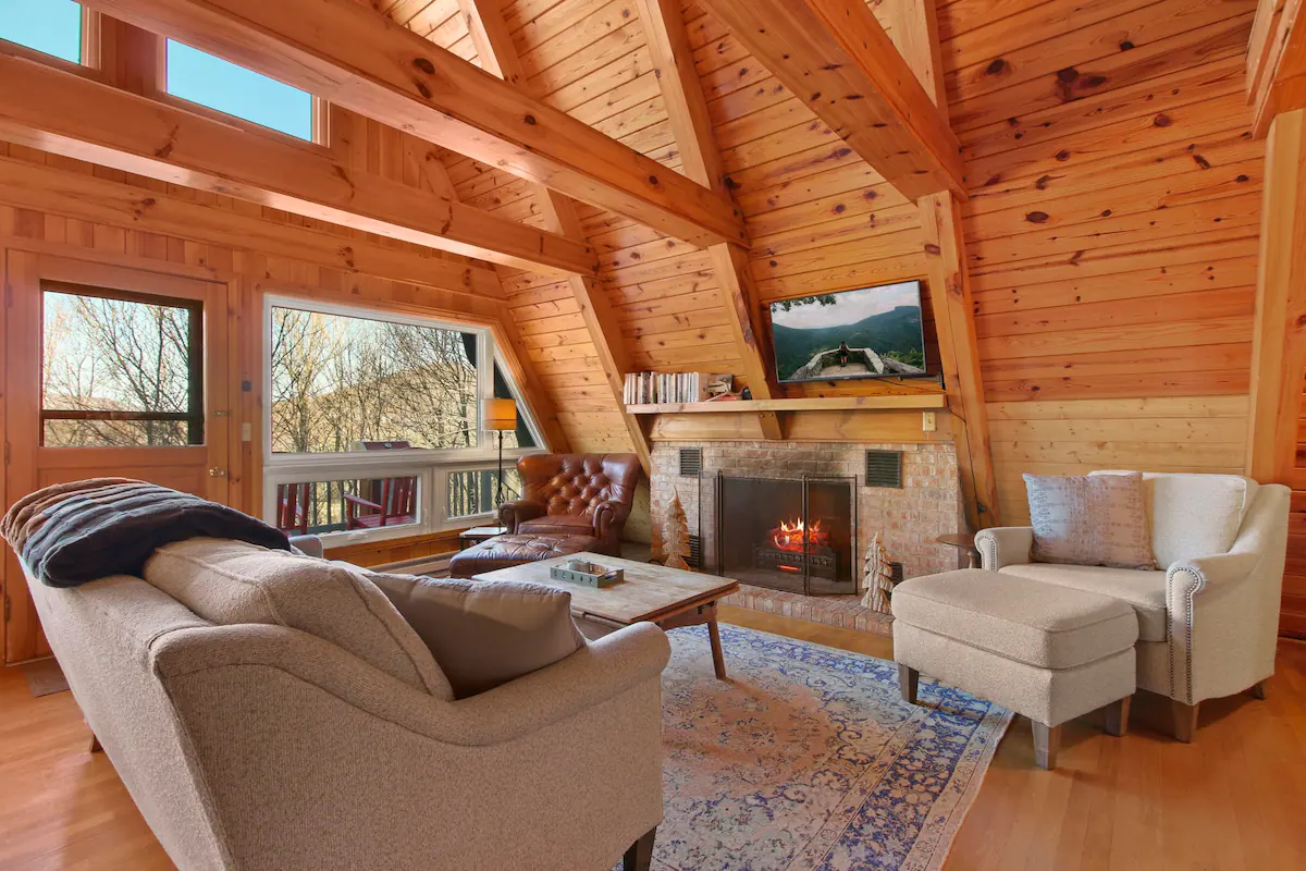 Welcome to ‘The stAy Frame’! Nestled in the woods, within the scenic Mountain Aire golf course community, come soak in all the Cozy Cabin feels that ‘The stAy Frame’ has to offer. We are just a few minutes from Old Barn Winery and Frosty’s Choose & Cut Christmas Tree Farm and also just a 7 minute drive to downtown for amazing food, shopping, and breweries – come have the ultimate mountain getaway!