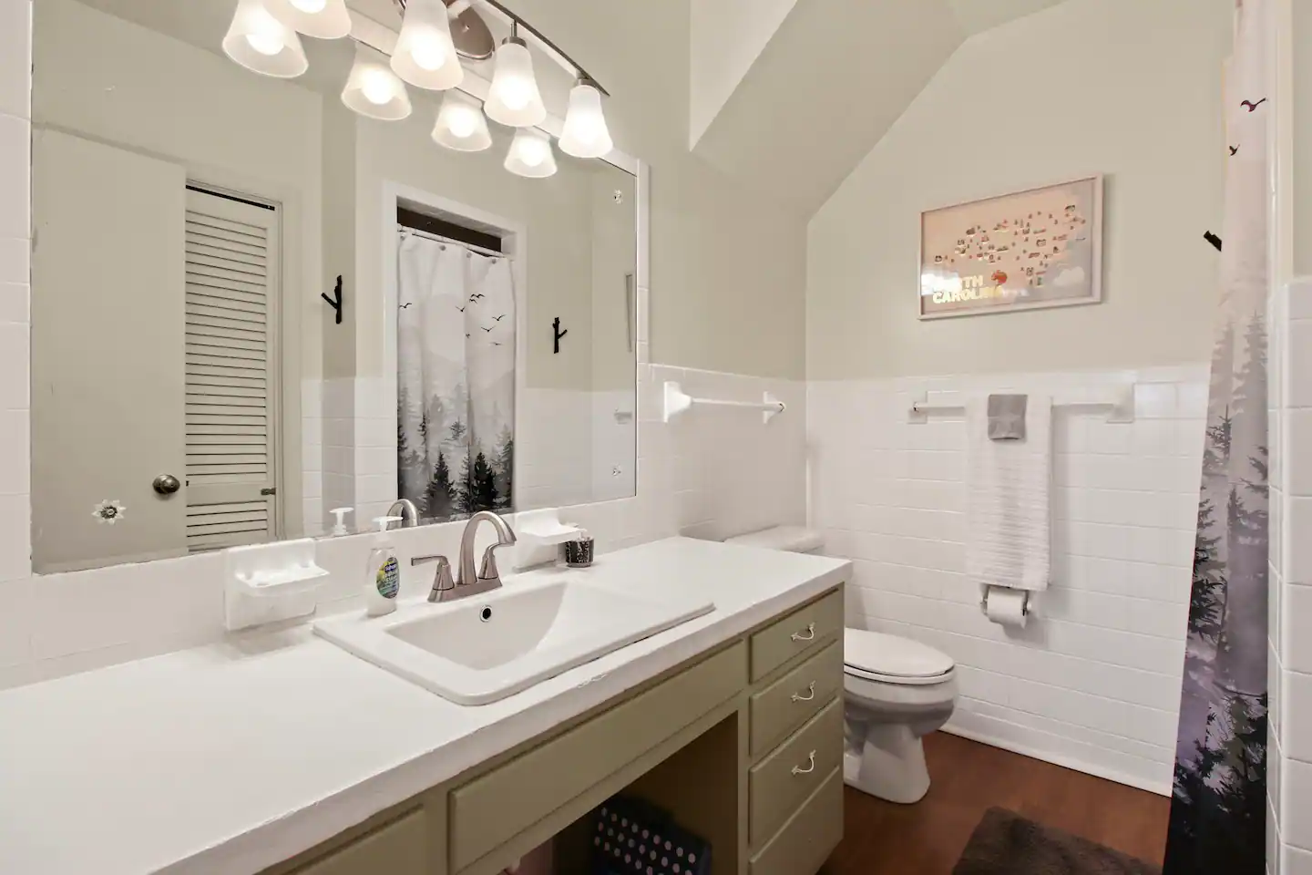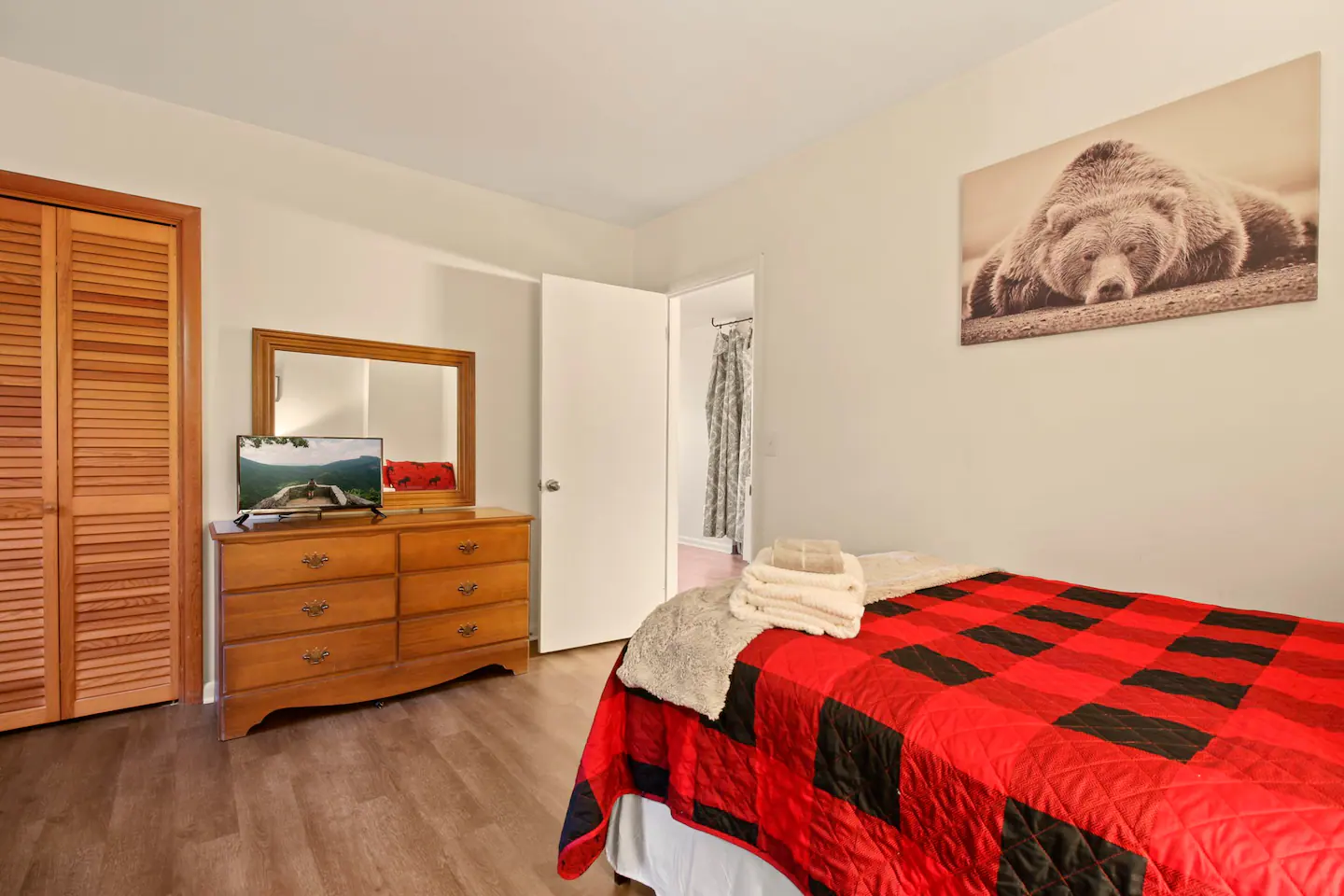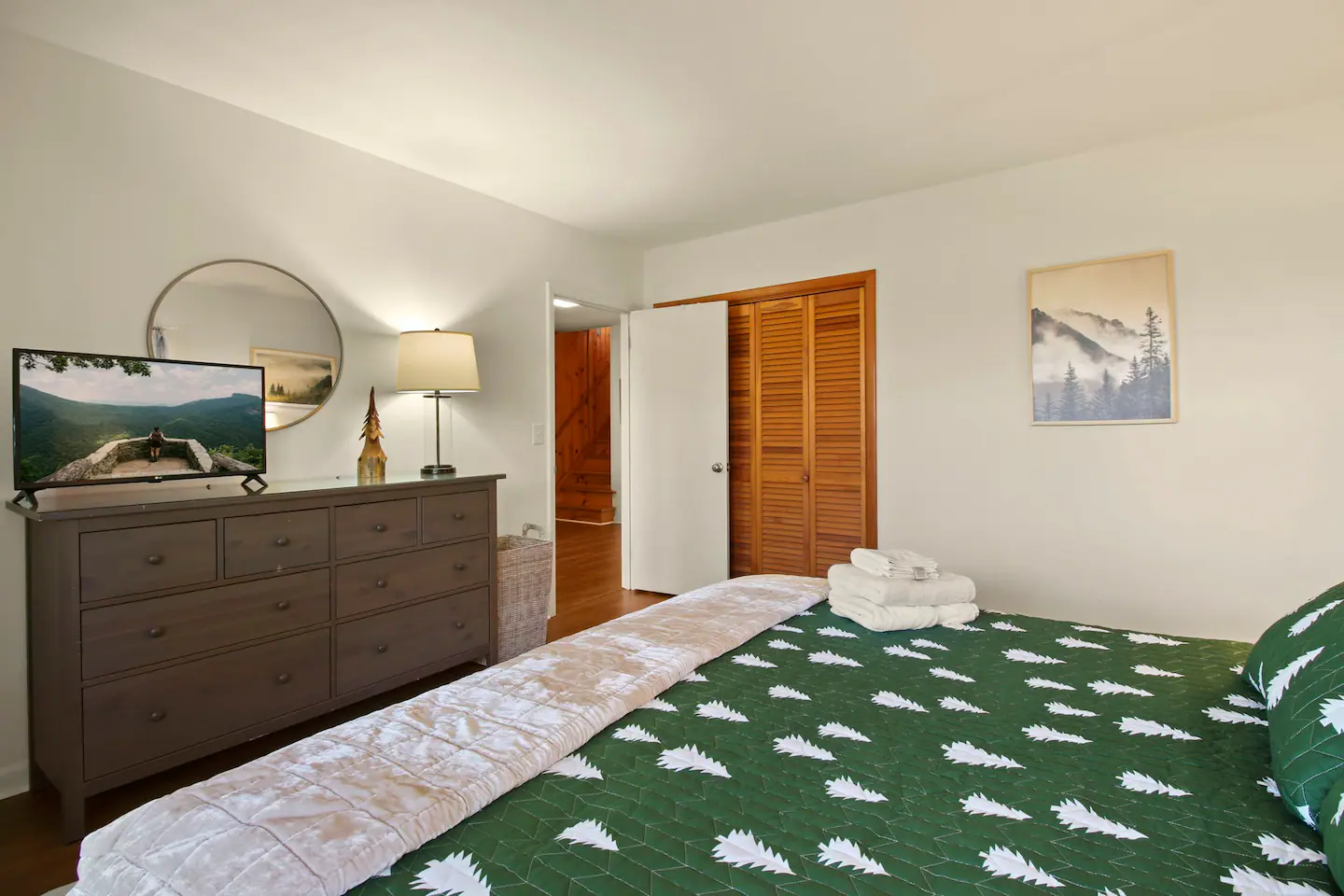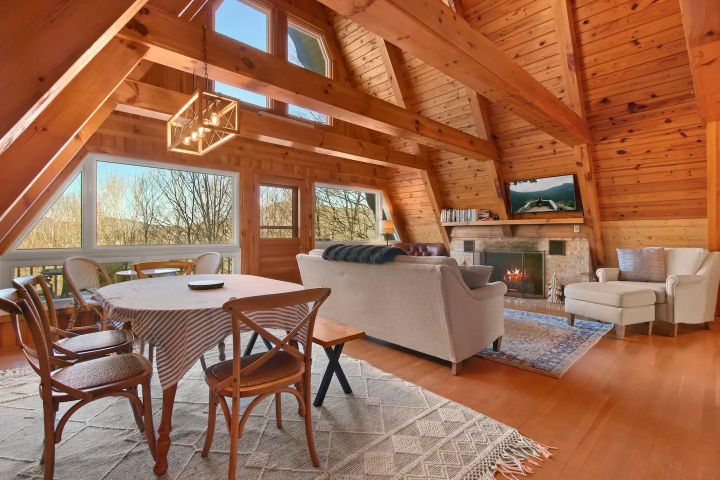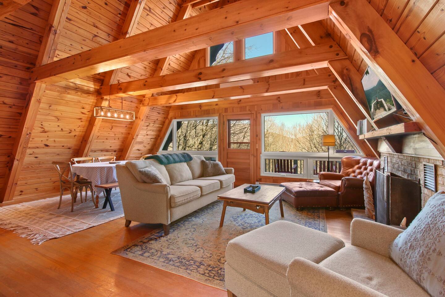 Welcome to ‘The stAy Frame’! Nestled in the woods, within the scenic Mountain Aire golf course community, come soak in all the Cozy Cabin feels that ‘The stAy Frame’ has to offer. We are just a few minutes from Old Barn Winery and Frosty’s Choose & Cut Christmas Tree Farm and also just a 7 minute drive to downtown for amazing food, shopping, and breweries – come have the ultimate mountain getaway!